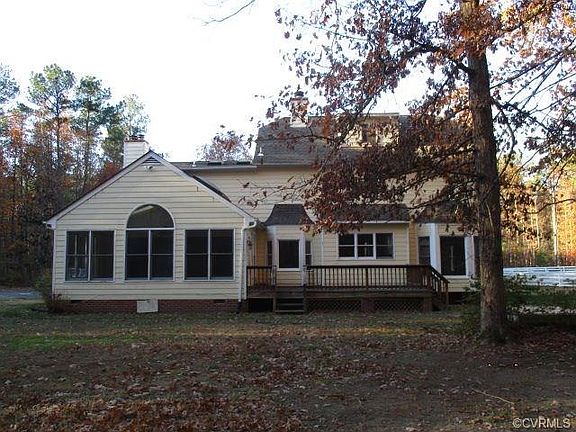 Huge house on acreage in Chesterfield County. Wooded, paved drive takes you back to this 3 level home with 4 bedrooms and 3.5 baths. The rooms are huge! Living room shares space with the dining area off the kitchen, making this room the whole left side of the bottom floor. There is a very nice office space with french doors and built in bookcase and storage that takes up the entire wall. The kitchen has a u-shaped work space and bay window area for additional dining. The great room is massive with cathedral ceiling, sky lights, wall of windows facing the wooded rear yard and gas fireplace. Utility room and 1/2 bath finish off the first floor. The second floor houses a master suite area that includes the bedroom with tray ceiling, see through gas fireplace that separates the bedroom from the master bath. The master bath has a corner jetted tub, linen closet, shower and large vanity. The master closets are on either side of the small hallway that takes you to the private sitting room with another corner gas fireplace. Two more bedrooms and full bath finish this space. The third level has the 4th bedroom and 3rd full bath. 7 + acres with barn and fencing for horses!