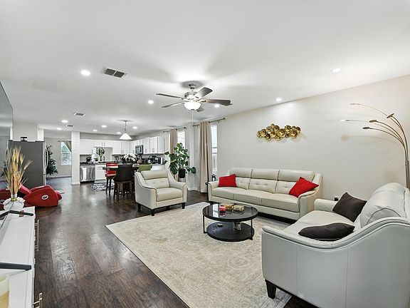 Spacious and upgraded home in the popular creekside at Preston neighborhood in Frisco. This beautiful 2 story house has large kitchen, two living area and split bedrooms. Granite countertops and stainless microwave, range and refrigerator in the kitchen. Primary bedroom in first floor has walking closet, dual sinks, separate shower. Upstair features 3 large bedrooms, a large living area and full bathroom.