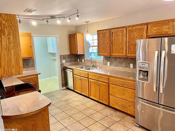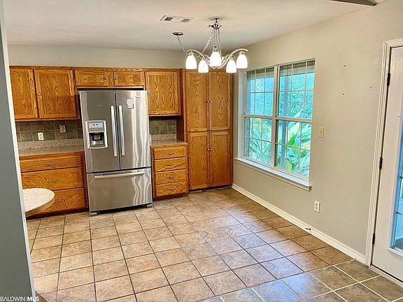 Quiet neighborhood between Magnolia Springs and Foley. 4 bedroom, 2 bath home with ENCLOSED SWIMMING POOL and additional 1/2 bath. All brick home with a two car garage and Bronze Fortified Metal roof (2016). Updated appliances including double ovens and Whirlpool refrigerator/freezer with upper french doors and lower freezer drawer. Bamboo flooring and tile throughout. Vaulted ceilings in the great room and wood burning fireplace. Separate laundry with built-in storage. Minutes from shopping and restaurants, boat launches and beaches!