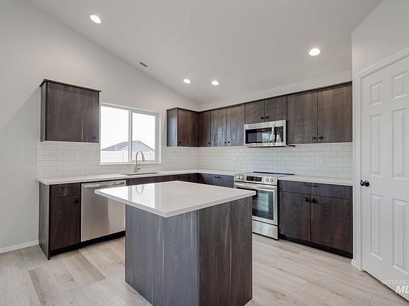 Feel enriched in your brand new home located in Nampa, Idaho! Dreams do come true in the Harrison 2025! Get the single-level home you always wanted without sacrificing any living space. Blinds are included throughout the home! The outside world will melt away while you relax in the bright & sunny living room at the rear of the home. The kitchen comes with stainless steel appliances and stylish solid surface countertops, adding both functionality and aesthetics to the kitchen. Discover an oasis of solitude in the primary suite with its enviable walk-in closet, dual vanities, and two refreshing windows. The concrete patio entices you to spend time outside so you will not miss even a moment of nice weather. Love where you live in the Harrison. Photos are of the actual home!