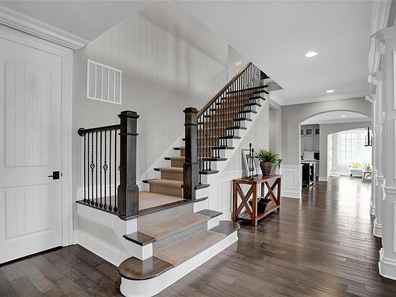 Gorgeous all brick home with beautiful custom finishes and private backyard oasis located in the highly sought after Village of WestClay. Stunning features include hardwood floors, detailed columns, wainscoting & beautiful light fixtures. Open concept flr plan w/2 story Dining Room, Living Room w/fireplace & Office. Gourmet Chefs Dream Kitchen featuring large center island w/seating, SS appliances & lots of storage opens to Sunrm & Great Room w/fireplace w/ lots of natural light. Master Suite w/Sitting Room & FP. Master Bath w/separate tub & shower & walk-in closet. Bonus space on upper level. LL has great open space w/wet bar, theater, workout room & full bathroom. Outdoor space w/ deck & views of mother nature.
