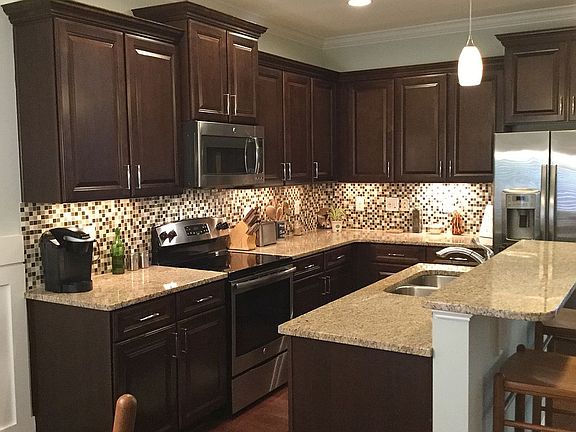 A charming Craftsman style townhouse with 1st Floor Master Bedroom Suite in the Vista Green Community of prestigious & exclusive Wakefield Plantation. Awarded a Blue Ribbon by the Home Builders Association of Wake County 2014 Parade of Homes, this dazzling 4 bedroom & 2.5 bath townhouse includes many upgrades befitting the Model Home & Sales Center for the community. Upgrades include an integrated security system with outdoor camera; 1st floor crown molding; custom window treatments and blinds; deluxe ceiling fans & light fixtures throughout; hardwood floors and stairs; berber carpeting in the master bedroom and rooms upstairs; storage cabinets in the garage. The gourmet Kitchen features deluxe espresso kitchen cabinets with under-cabinet lights and extensive cupboard space; glass tile back-splash; granite counter tops; island with bar, double sinks, disposal, dishwasher & storage; custom pendant lights & recessed ceiling lights; media docking center; integrated sound system with ceiling speakers; GE range, refrigerator, microwave, dishwasher & disposal; convenient pantry; wainscoting in dining room. The exquisite 1st Floor Master Bedroom Suite features a coiffured ceiling & fan and dual windows providing plenty of natural light. The Master Bathroom was upgraded & renovated in 2018 and is accessed via a strikingly attractive sliding barn door that does not intrude into the bathroom space while open. Master Bathroom renovations and upgrades include a large frameless glass enclosed shower with rain & handheld shower heads and seating area; beautifully tiled large soaking tub; deluxe double vanity topped with stunning Carrara Marble; matching tiled floor; upgraded bath fixtures & lights; and a spacious walk-in closet. The downstairs Powder Room was also recently completely renovated with upgraded vanity, fixtures, & lights and a large beveled mirror. The Family Room faces the front of the house and has a large ceiling fan and a romantic fireplace that warms the room during the colder winter days and nights. Upstairs, there is a loft area that can be used as an office, media room, or play room for children. Three spacious bedrooms are located upstairs, one of which has a unique brick accent head wall and large picture window providing an excellent view of the front of the house. Another front facing bedroom includes a large wall mounted mirror for use as an exercise/workout/dance space. A convenient upstairs full bathroom is located between the three bedrooms and loft area. The laundry room is located upstairs. The high-efficiency tankless water heater is located in the walk-in attic space, and there is also a pull down ceiling door in the upstairs hallway for more attic storage. The exterior of the house features low maintenance cement/concrete composite siding; covered front & rear porches; one-car garage; a large grassed side yard; ample auxiliary parking; and tasteful and well maintained landscaping throughout the community. All existing GE major kitchen appliances and washer & dryer are included in the sale. HOA dues cover roof & landscaping maintenance, certain repairs, pressure washing, exterior painting. Membership to Wakefield Country Club is available that includes a tournament-level golf course and the usual country club amenities. There is immediate access to a greenway that provides miles of paved walking & bike trails. There are also Wake County parks and recreation facilities located within minutes of the community, as well as places of worship, excellent schools, healthcare & pet care facilities, a variety of restaurants, grocery stores, home improvement & hardware stores, super-stores, and gas & auto-service centers. This townhouse was sold to the original and current owner in 2016 for $295,000. The cost of upgrades to the Master Bathroom & Powder Room in 2018 was $28,000. Open House scheduled for Sunday, August 2nd, from 1:00 to 4:00 pm, COVID-19 precautions are enforced, including masks!