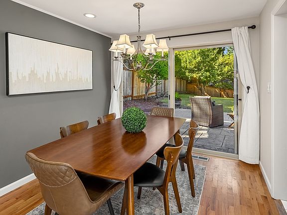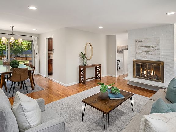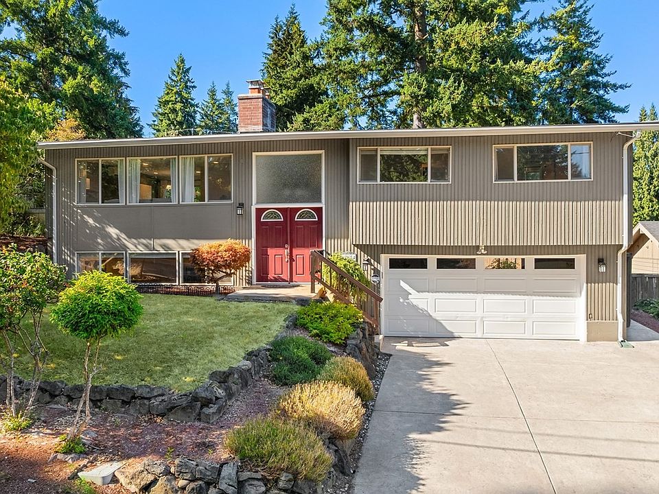 Features a newer kitchen w/ large eating space overlooking a mostly flat backyard w/ fruit trees & lots of play space. Beautiful hardwood floors throughout the main level, a warm fireplace in the living room, & a dining room off the kitchen & living room. Main level includes 3 bedrooms, updated bath, & a half bath. Lower level offers a large rec/game room w/ fireplace, an extra finished room, & updated bath. Large 2-car garage w/ laundry area & sink. Easy access to I-90, 405, or 520, downtown Seattle & Bellevue shopping & dining, & super close to T-Mobile, T&T market, & Factoria Mall. Two community pools, trails, tennis, pickleball in Woodridge & top-rated Bellevue High.