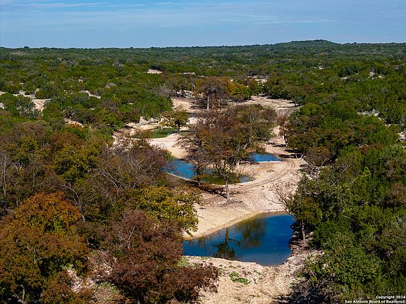 Low Fenced area which includes Bow Wood Spring, the pond system, cleared homesite with impressive views and pit where Caliche has been used to build the road system within the ranch.The Low Fence portion of the property has excellent water options with a historical flowing natural spring and Copperas Creek frontage on the property. There is a utility vehicle trail constructed down to Copperas Creek where a family can enjoy over 1,000 feet of creek frontage. The natural spring in the middle of the ranch feed