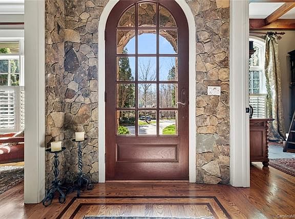 This custom built, European Style Estate by Grainda Builders, is nestled on a stunning 260 ft waterfront lot in the well sought-out subdivision of Overlook, contains 5 bedrooms and 4.5 bathrooms, and 5205 sq. ft. of luxury. As the city's closest lake, you can enjoy the lake lifestyle conveniently located only 15 min from both Uptown and Charlotte's international airport. This masterfully crafted home is full of high-end details throughout including the beautiful stone foyer, vaulted wood ceiling & exposed beams that greet you upon entry. The gourmet granite kitchen has high-end stainless steel appliances and plenty of space for entertaining. The Master Suite is on the 1st floor, with dual custom vanity, a large walk in closet, 2 head shower, and a Jacuzzi tub. The 2nd floor has additional bedrooms & 2 full baths, as well as a bonus room and playroom. Outside there is a large kitchen w/ island & gas grill, and a private outdoor shower, and irrigation from lake.