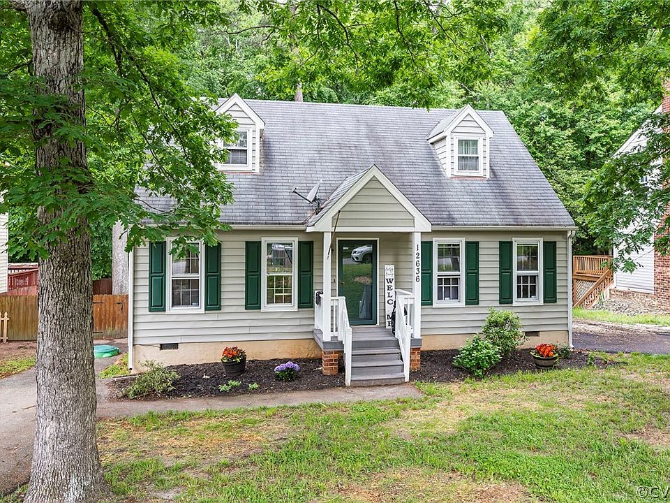 Located in the heart of the West End and just minutes to Short Pump Town Center, this wonderful cape cod-styled home features 4 spacious bedrooms; 2 full baths; large living room; updated eat-in kitchen with newer stainless appliances, sink, flooring, ceramic tile backsplash, cabinet hardware, and refinished countertop; many updates throughout including newer flooring, upstairs bath vanity, ceiling fans, light fixtures, and hot water heater; new washer and dryer remain; bay window in the kitchen; lots of closet space throughout; heat pump (approximately 4 years old); front covered stoop; rear deck; low-maintenance vinyl siding; paved drive; fenced backyard; large detached storage shed; and so much more! Better hurry ... This one won't last long!!!