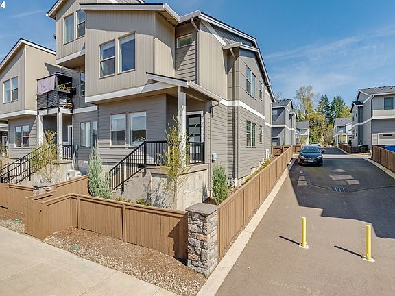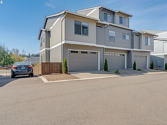 END UNIT!2-CAR ATTACHED GARAGE! LOWEST price per square foot in Happy Valley! Relocating out of state and motivated! LIKE-NEW built in 2021! Why wait for new construction? MOVE IN NOW! Soooo many upgrades and special touches are included! Energy efficient heating and cooling! Tankless water heater! Solar ready. Vinyl double pane windows increase energy efficiency and help keep the inside quiet despite being a busier road! Light and bright living room with high ceilings and gorgeous electric fireplace! LVP FLOORING throughout the main level! The kitchen has everything you could want- QUARTZ counter tops, breakfast bar, STAINLESS STEEL APPLIANCES, GAS range, PANTRY and a REFRIGERATOR plumbed for water/ice. Spacious dining area! CHECK OUT THE ROOM SIZES!! Floorplan is included as the last photo. PRIMARY SUITE has a walk in shower, double sinks and large walk in closet. Bedroom 3 is vaulted and has a walk-in closet! WASHER and DRYER are INCLUDED in the upstairs laundry! Fenced front/side area for quick pet potty breaks! 2 car attached garage with electric opener, accessed from a back alley. HOA dues cover EXTERIOR/ROOF MAINTENANCE, front yard landscaping, community park and common areas, walking path, management and master insurance. Wait … there’s more!! Enjoy the convenience of being seconds away from restaurants, coffee shops and grocery stores! Extra parking is available along Zion and Crossroads PLUS you have the side ‘street’ for easy loading/unloading right beside the front door and garage! Make an appointment today! You’ll love living here!