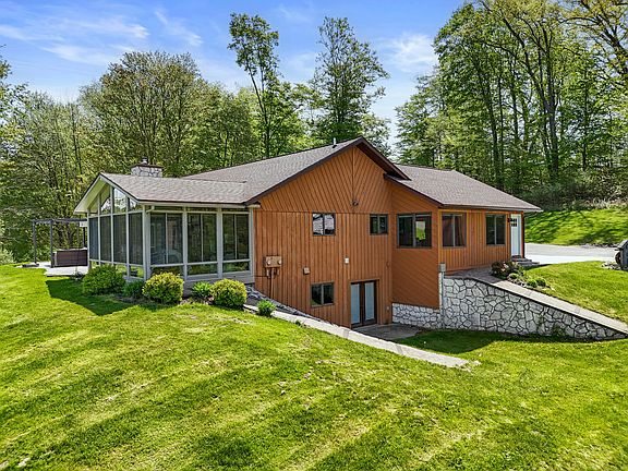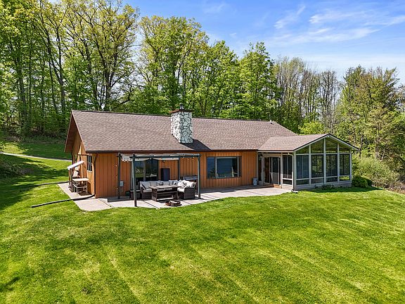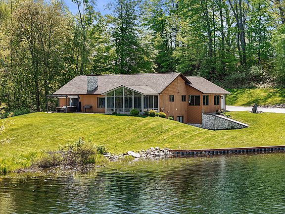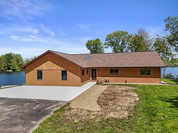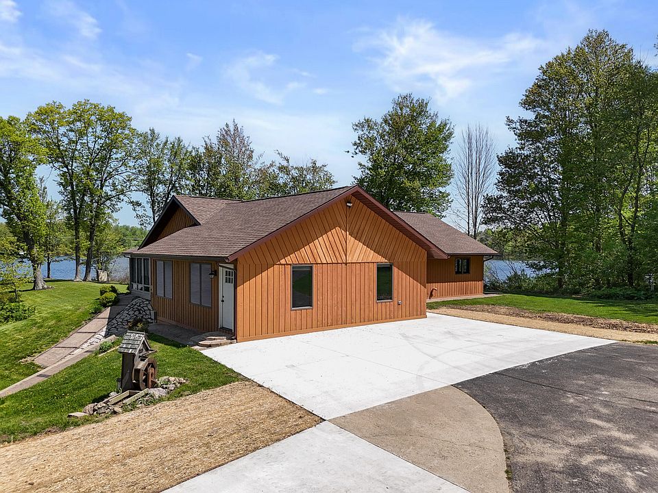 A Penasa Lake showplace with just over 2000 feet of waterfront on a private, peninsula setting sitting on 5.8 Acres. This updated 4 BR, 3 Full Bath home features granite countertops, updated bathrooms, newer flooring & paint. Views of the lake at nearly every corner of the home create the perfect lake atmosphere. The 4 season room enables you to enjoy the beauty year round in comfort or sit out and enjoy the sun on the large stamped concrete patio. At the end of the peninsula you will find a sandy beach for swimming. Lake Penasa is known for the excellent fishing & holds multiple species including bass, perch, bluegill and others. Geothermal Heating & Cooling. Blacktop driveway for easy maintenance, With all this there is also tons of storage in the 2 pole buildings. , the lower pole building has built in dog kennels for your pets, as well as heat and electricity. There are many more attractive features of the home that will need to be seen in person to appreciate.