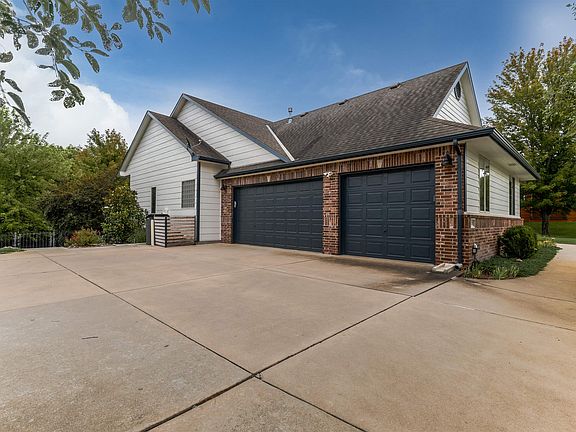 Welcome to 12638 E Zimmerly Ct, a spacious 3,192 sq ft home tucked away on a quiet cul-de-sac in east Wichita. Sitting on a generous .39-acre lot, this property has plenty to offer both inside and out. Step inside to discover a split bedroom plan with 3 bedrooms and 2 bathrooms on the main floor, including a master suite with a walk-in closet, separate tub and shower, and double vanities. The kitchen features granite countertops and opens to the dining and living areas, making it perfect for both everyday living and entertaining. Fresh exterior paint gives the home great curb appeal, while the side-load 3-car garage provides plenty of parking and storage. The finished basement adds even more living space with 2 additional bedrooms, a full bathroom, a large family room, a wet bar, and extra storage. Outdoors, enjoy evenings on the covered deck or patio, surrounded by a charming stone retaining wall. A true bonus is the 18x22, 2-story studio/workshop in the backyard — ideal for hobbies, projects, or a home business. This shop is fully equipped with heat and air conditioning, hot and cold water, and a 220-volt electrical outlet. This home has the space, updates, and location you’ve been waiting for. Don’t miss your chance to see it!