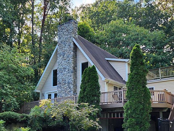 Price reduced! Just over 3,500 finished sq/ft on three levels. Beautiful 5.89 acre mostly wooded lot. Inground pool for coming summer fun. Large synthetic wrap around deck with patio and pergola behind. Dramatic floorplan. Nothing else like it! Looking for main level bedrooms? We've got them. Large primary bedroom on second level. Private second level deck. Dramatic open great room with tongue and groove wood ceiling. This property has a Classic titanium enhanced outdoor wood furnace that can heat the house, hot water and, during season even take a chill off the inground pool.