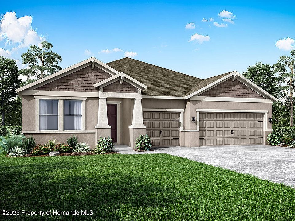 Spacious, Smart, and Designed for Living - Welcome Pinecone Reserve!This beautifully designed 4-bedroom, 3-bath home offers over 2,800 square feet of open-concept living, perfectly situated on a desirable corner homesite for added privacy and curb appeal. A true standout feature? The 3-car garage—ideal for extra storage, a workshop, or that weekend car project.Step inside and you're greeted with a flexible layout featuring a private study, a spacious great room, and a gourmet kitchen with a walk-in pantry and oversized island that's perfect for entertaining. The owners suite is tucked away with a luxurious bath and generous walk-in closet. With a split-bedroom design, everyone gets their own space. Located in the new community of Pinecone Reserve, you'll enjoy low HOA fees, no CDD, and convenient access to local shopping, dining, and major highways. Whether you're hosting friends or enjoying a quiet night this is the home for you. The photo is a rendering only and not the final color/finish choices