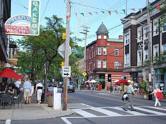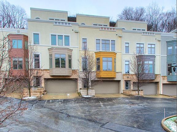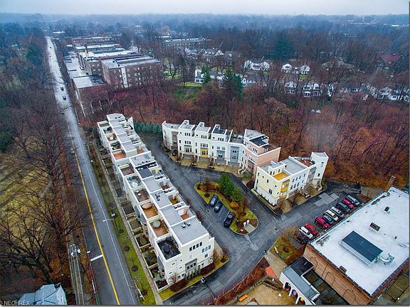 Striking 4 Level Villa Carabelli townhouse, meticulously updated & situated in a gated community in the heart of Little Italy. The 1st floor entry level has an attached heated two car garage and carpeted bonus room with wall of closets, currently used as an exercise room. The inviting 2nd level offers an oversized great room with gas fireplace, newer beautiful wide plank walnut hardwood floors, dining room and newer French doors that open to a deck and views of a private wooded hillside. The eat-in cook's kitchen offers maple cabinets, granite counters, an island, slate floors, stainless steel appliances and a delightful bay window with views of Little Italy. The 3rd level features a master bedroom suite with views of the woods through a marvelous picture window, a walk-in closet and glamour bath with slate floors, jetted tub overlooking the woods, separate glass walk-in shower & double sinks with Corian counter. Another bedroom with private full bath and walk-in closet, plus a laundry room complete this floor. The 4th top level features a family room, additional storage & doors leading to a wraparound deck with picturesque views of the woods, Little Italy & the city & lake beyond. Additional features include 2 furnaces & 2 A/C's. Located within walking distance to Little Italy, restaurants, CASE, University Circle, University Hospitals, Museums & shopping. Minutes to the Cleveland Clinic. The perfect urban location for a fabulous lifestyle.