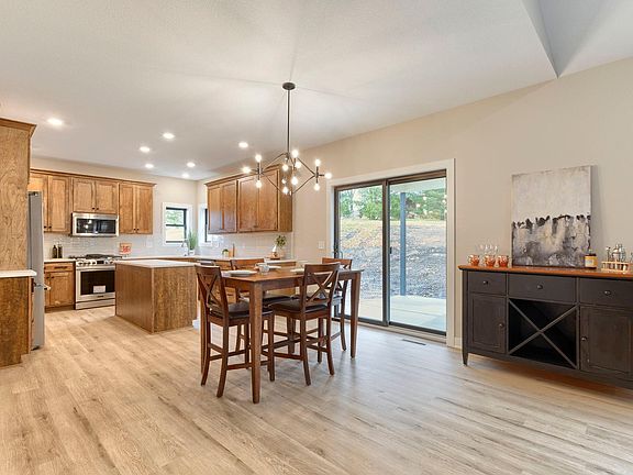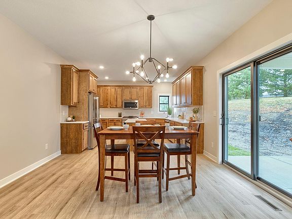 New home ready to move into located in quiet cul-de-sac close to bike and walking path. Great features, kitchen with quartz counter tops, center island along with a walk in pantry. Nice open floor plan with dining area that walks out to covered patio, great room with extra tall cathedral ceiling with laminate flooring. 3 bedrooms on main floor with primary with private bath that offers double sinks, walk in tile shower and walk in closet. Separate laundry room on main floor with extra cabinets, lower level has 4th bedroom, family room and full bath. Don't forget about the extra large garage that is heated and has 1080 sq ft. Be sure to check this home out. Developer will sell lot next to home if would like larger lot, ask agent for price.