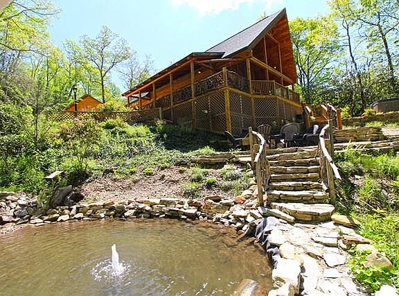Beautiful Southland Log Home in Prestigious Gated Alarka Highlands. Very Private Location with upscale Community Amenities such as a Community Pavilion, Pickle Ball Court and Private Hiking Trails and Waterfalls. This Cabin Features Long Range Views that can be enjoyed from the Hot Tub on the Large Stone Patio Deck while listening to the water flow from your own Private Pond. This Cabin features a Large Oversized Two Car Garage that is currently being used as a Huge Game Room equipped with a Variety of Family Fun. Additional Sleeping Accommodations in this area as well. Mountain Laurel Custom Hand Rails surround the Wrap Around Covered Decking with Lots of Seating and a Large Porch Swing. Large Stone Fire Pit for those Chilly Evenings to keep you warm while Roasting Marsh mellows. The inside of this Cabin has it all with Granite Countertops and Stainless Steel Appliances. A Rustic Huge Stone Wood Burning Fireplace. Turn Key Ready with Lush Furnishings for a Turn Key Cabin Rental, Extremely Successful on Vacation Rental. History is available. Gross 2020 Rental Income is over 43K WITH COVID SHUTDOWN!