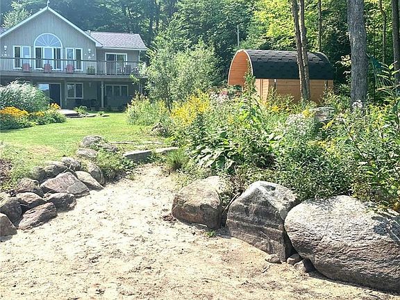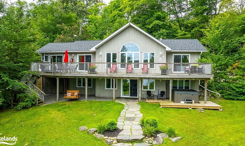 Discover a captivating year-round cottage/ home on prestigious Redstone Lake featuring 3-bedrooms plus den, 3-bathrooms and offers 2500 sq ft of finished living space, including an ensuite with a jacuzzi tub off the master. This property provides the perfect blend of modern living and serene natural beauty. With its open concept layout, spacious rooms, and premium lakefront location, it presents an exceptional opportunity for anyone seeking a luxurious lakeside retreat. Enjoy abundant natural light through wall-to-wall lakeside windows. The 4-season Haliburton room brings the outdoors in. The lower walkout level features a large family room with wood stove plus the third bedroom, den, third bath and laundry. The large deck overlooks the lake, and Redstone is perfect for boating, fishing, and recreation. Hard sand entry and clean, clear swimming enhance this exceptional property. The lakeside 4-person wood burning sauna adds comfort and luxury to your cottaging experience. Serviced by a propane forced air furnace, propane fireplace (main), wood stove (lower), central vac, artesian well, breaker panel, Starlink internet, cell booster and Generac 22 KW. Close to Sir Sams Ski Hill, Haliburton Forest, and the Village of Haliburton, offering year-round enjoyment. Don't miss this fantastic package on Redstone Lake.
