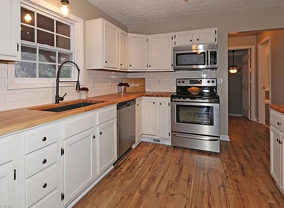 Move in ready Totally remodeled 2 bedroom, 2 bath Bungalow with 1280 single level sqft, custom kitchen with new SS appliances, open floor plan with dining area, great room with wood burning fire place, bonus room/sleeping, 7 X 36 front covered deck, duct propane furnace, 2 outbuildings, and just 5 minutes from I-40 access, shopping or downtown.