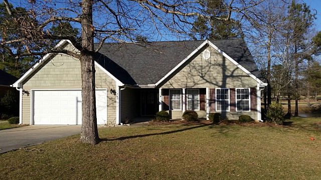 Immaculate 3 BR/2 bath house in gated neighborhood on golf course. Fresh interior paint and new carpets. Tile in kitchen and bathrooms, hardwood in dining area. Central heating/air, back patio, garden tub, walk in closet, dual vanity. Yard maintenance & community pool included. Must have good credit. No Pets Allowed.