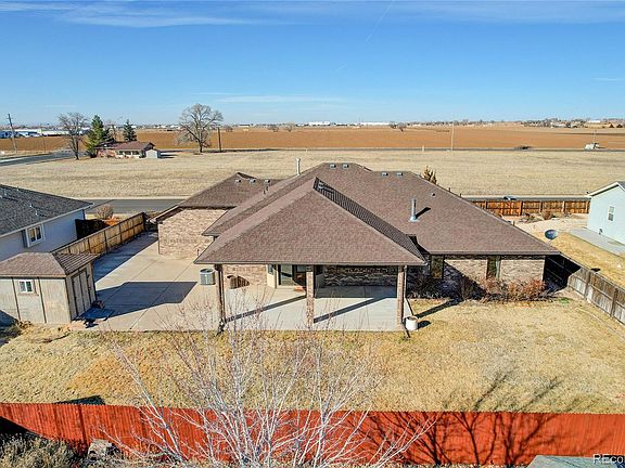 Welcome to your dream home in the heart of a sought-after neighborhood! This exceptional brick ranch-style residence is sure to impress. As you step inside, the open floor plan welcomes you with a spacious living room boasting high ceilings and a cozy fireplace. The heart of the home unfolds before you connecting the living space to a delightful breakfast nook and a well-appointed kitchen. Picture yourself entertaining in the large dining room, adorned with a trayed ceiling and a convenient butler's pantry. The breakfast nook opens onto the generous covered back patio and the covered front patio has mountain views. The primary bedroom features a trayed ceiling, large walk-in closet and an ensuite bath with dual sinks and a separate room for the tub, shower and toilet area. The two additional bedrooms have charming window seats and spacious closets. The full basement already has a finished bathroom and if you need more living space there are endless possibilities and includes 3 more egress windows. The finished, oversized 3 Car Garage and convenient concrete RV parking and storage behind the fence allows you to bring all of your toys! The absence of a metro district or HOA fees is an added bonus. Situated just a block away from Brighton Park and Recreation Center makes it very convenient for an active lifestyle. Located a mere 25 minutes from DIA or Denver, this residence is strategically positioned for easy commuting.