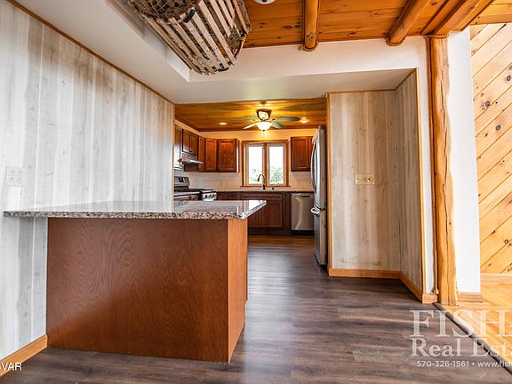Peaceful, tranquil, calm describes the view you will see from the living room and decks of this 3-bedroom, 2-bath home! Home sits on 11 acres and unveils seasonal panoramic views that will never disappoint, showcasing sunrises and sunsets allowing you to capture natures beauty day after day. Home has many great amenities and features. An attached garage with ample space for that mechanic at heart, outdoor enthusiast, carport, above ground pool several deck and outdoor porch options. Both bathrooms newly renovated. A newly renovated kitchen with granite counter tops, soft-close cupboards, LVT flooring and all new appliances. Driveway is a shared right away, ALL OGMS CONVEY. For your personal showings, text, call or email Denise Reis at 570.772.4493 dreis@fishre.com.