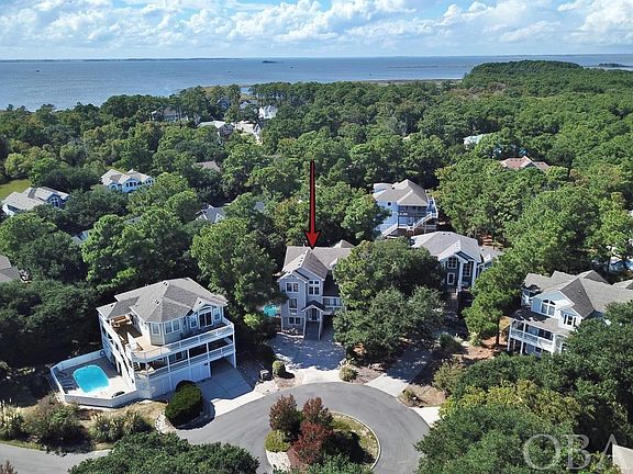 Fantastic 6 bedroom home is easy to show - NEW ROOF installed October 2023. Off the beaten path you will find this custom-built, well appointed and maintained home sitting in a park-like setting on a quiet cul-de-sac in the Villages at Ocean Hill. There are many year round and second home residences on the soundside area of VOH, making it a friendly neighborhood. It is easily accessible to the ocean and all amenities of VOH. A spacious patio/deck with private pool, hot tub is surrounded by live oaks & pine trees providing welcomed shade. Inside, a large rec-room w/refrigerator & wet bar has access out to the pool deck. Also a bedroom and a full bath are on this level. The middle level offers a tiled entry foyer, a total of 4 bedrooms, two w/private decks in addition to a large deck overlooking the pool. On the upper level there is a bedroom with an en-suite bath w/jetted tub & walk-in shower The Great room offers a very comfortable seating arrangement with a gas fireplace. The kitchen had been updated with granite countertops and stainless appliances, and the dining area leads out to the cozy screened porch and a sun deck overlooking the pool. 2019 Extensive community amenities include Ocean & lakefront pools, tennis courts, fitness center, playground, basketball & shuffleboard courts, and 8-acre lake. Close to shops, restaurants, 4x4 beaches, and Historic Corolla Village. Explore others, but you'll find your beach home at Compass Rose! See Village Realty's projection of $64.986,000