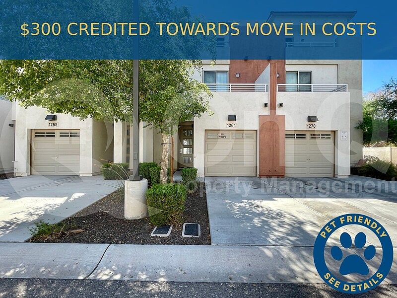 ** $300 CREDITED TOWARDS MOVE IN COSTS ** **This home is currently offering a 6 month lease only 1,835 SQ FT! 3 bedroom, 2.5 bath townhouse with a charming two-story floor plan in Tempe. Home opens to a large living/dining room, great for entertaining! Kitchen boasts ample cabinetry, granite countertops, a breakfast bar, and stainless steel appliances! Ceiling fans and blinds throughout. Lovely 3 bedroom townhouse coming with laminate and carpet flooring in all the right places. Master bedroom offers an en-suite bathroom with dual sinks and a walk-in closet. 2 car garage! Balcony! Convenient Tempe location, close to shopping, schools, and restaurants. Pet Policy: Dogs Allowed with the following exceptions: Pets allowed upon approval. NO CATS. $150 Non-Refundable Pet Fee per pet. A $50 Pet Rent per month per pet will be added to the rental amount (when applicable). (Service Animals - Please refer to the Resident Qualification link below) This home is managed by On Q Property Management. Please use the On Q Rentals website or click the following link to submit your application: https onq.findigs.