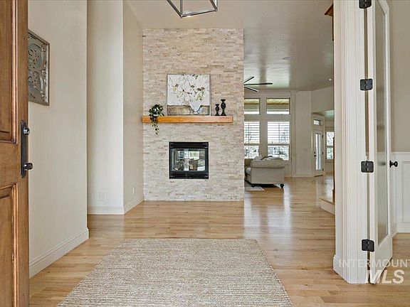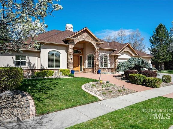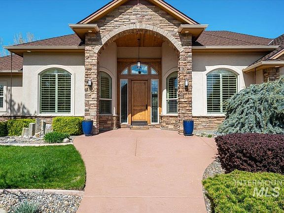 Welcome home to this exceptional custom-built waterfront home in Eagle's exclusive River's End neighborhood. This well cared home has 4 bedrooms, 3.5 baths, office, 3 car garage. The welcoming two-sided fireplace greets you as you enter this meticulously kept home. Gourmet kitchen w/center island, built in oven & microwave, gas oven/range, wine fridge, ample cabinetry, corner pantry and tons of granite counter top space make this a perfect place for all to gather. Great room with built in entertainment center and shutters on windows. Main level master suite with spacious closet, his & hers vanities with make up vanity, soaker tub and tile shower. Bedrooms 2 & 3 with jack and jill bathroom. Upstairs 4th bedroom w/ en-suite bathroom could be used as a bonus room. Impressive backyard with 2 large covered patios, stone gas fireplace and outdoor built in grill. Close proximity to the Rivers End community pool, greenbelt, downtown Eagle, shopping, restaurants, and many amenities. Move in ready!!!