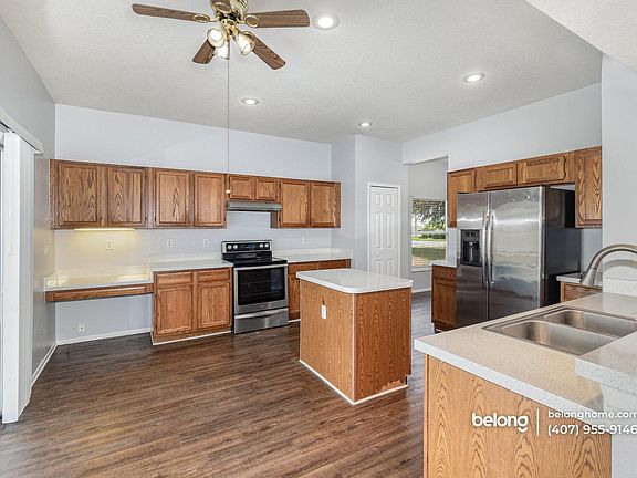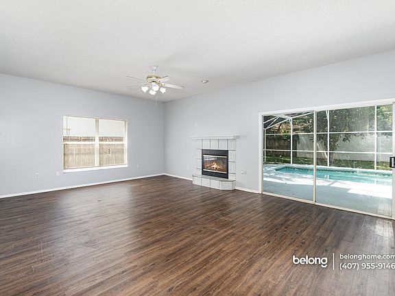 Expansive living, natural light, and a private pool come together in this 4-bedroom, 3-bath home offering 3,000 square feet of space to enjoy. Tall ceilings and wide-plank floors create a bright, open feel, while sliding glass doors frame the screened lanai and pool - giving you a refreshing retreat right at home. The main living area features a tiled fireplace as a visual focal point, ceiling fans for added comfort, and enough room to gather with ease. A nearby dining area accommodates large meals, while the kitchen brings plenty of cabinet storage, a central island for prep, and stainless-steel appliances ready for everyday cooking. Your main bedroom is designed for comfort with an ensuite bath that includes dual sinks, a soaking tub, and a separate shower. Three additional bedrooms and two more full baths provide flexibility for family, guests, or a home office setup. Central heat and A/C ensure year-round comfort, and an attached 2-car garage offers secure parking and extra storage. Beyond the home, local parks, lakes, and springs offer endless outdoor activities, from hiking to kayaking, while nearby shops, groceries, and dining make errands and nights out convenient. Easy access to major routes keeps commutes simple and weekend adventures within reach. *One pet allowed. Pet weight limit is 40 lbs - if your pet exceeds this, please reach out to see if we can accommodate! *Fireplace is for decorative use only and cannot be used without consent from Belong. *Our homes come as-is with all essentials in working order. Want upgrades? Request it through the Belong app, and our trusted pros will take care of the rest!