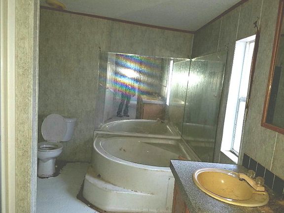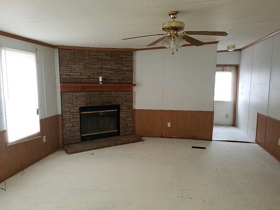 Large mobile home on over two acres. Huge master suite with sitting room. Large master bath with garden tub. Walk-in closets. Fireplace. Large deck on back. Fenced back yard. Needs some work. Sold as is. Mobile home tax id 777-00-12-659