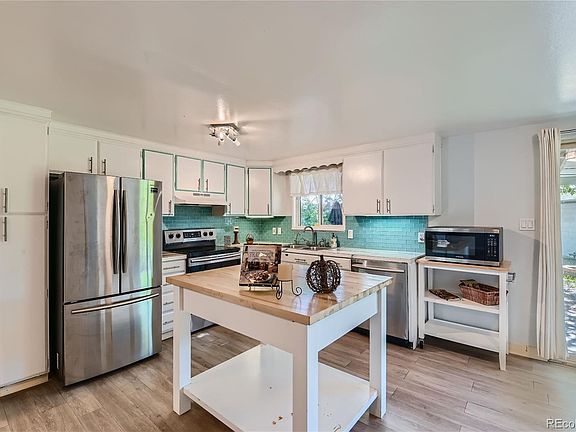 Lovely Remodeled Mid-Century 3 Bedroom Ranch w/Garage On Quiet Street. One Story Living with no Stairs! Open Modern Floor Plan w/Great Room. Open Kitchen w/Custom built Island! Stainless Steel Appliances, Beautiful Newer Tile Back Splash, & Refinished Cabinets. Newer Bathroom Remodel, Tile Tub & Tile Flooring, Cabinet, Fixtures, & Toilet. Gorgeous Wood Flooring! Newer Light Fixtures & Ceiling Fans. Charming Built-Ins & Classic Cove Ceilings! Newer Windows, Washer & Dryer Included. Relax & Entertain on Back Yard Patio & Enjoy the Hummingbirds! Re Engineered Fire Pit Included! Front & Back Yard Sprinkler System. Extra Parking Behind Garage, Garage Shelves/Work Station Included. Walk one Block to Nome Park/Community Garden. Convenient Location close to many amenities! Minutes to Anschutz Medical Campus, Stanley Marketplace, 20 Minutes to DIA/Downtown. Welcoming Curb Side Appeal! **Roof Cert**