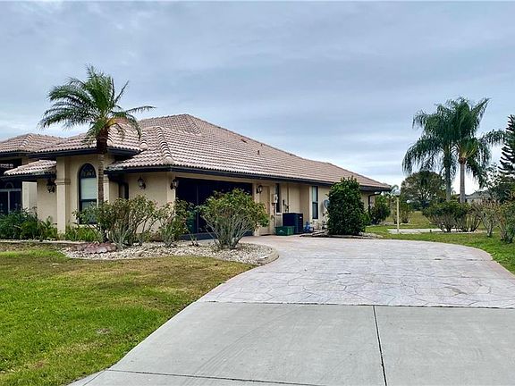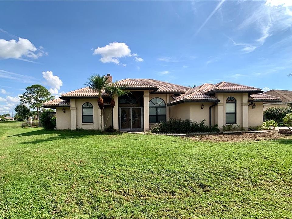 Impressive pool/spa home in Section 23 of Deep Creek. Amazing location on a private cul-de-sac court near Lake Zappa. Green Belt behind home goes down to the lake. This stately tile-roof home features a beautiful fireplace in the Great Room & the Master Bedroom. Appealing features include lovely caged pool/spa & lanai with extended lanai & full bathroom. Enjoy the pool & views of Lake Zappa from lanai. Brand new Air Condition System installed in September, 2019. Kitchen is a chef's delight with beautiful granite counters, cabinetry & eat-at counters, breakfast nook & enticing views of the pool. Just off the kitchen is a mini-office area & large inside laundry that includes the washer/dryer & cabinet ironing board. The master suite is spacious with beautiful fireplace. The master bathroom has separate shower & tub. Large side entry garage. Other improvements from Charlotte County Building Permit records show that the home was re-pipped in 2007, new pool cage in 2005 and tile roof replaced in 2004. This upscale community has deed restrictions to assure the pride of ownership of the homes & includes maintenance of the lakes, green belts & common areas. The golfers love the greens of the Deep Creek Golf Club, a semi-private golf club offering a challenging 6000 yard course 7 days a week from 7 am to 6 pm. The community has a tennis court, playground. Nearby is the Harbor Heights park & boat launch on the Peace River. Enjoy the SW Florida waterways, harbor & Gulf of Mexico, the boating & beaches are nearby.