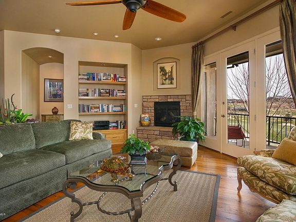Views! Golf Course Views! Lakes views! Mountain views! Overlooking the 1st fairway of the world-class Hale Irwin Golf Course at Prescott Lakes, panoramic views are captured from this elegant main level living home offering 2541 square feet, 3 bedrooms, and 3 1/2 baths. Thoughtful details are found throughout this home including the full extension French doors that open the great room to the spacious covered deck on two sides creating a sense of spacious outdoor living and a flowing floor plan for entertaining while taking full advantage of the spectacular views. This home shows like a model and features recycled red-oak plank flooring, 8 foot interior doors, two gas fireplaces and a two-car garage plus two large storage or workshop rooms.