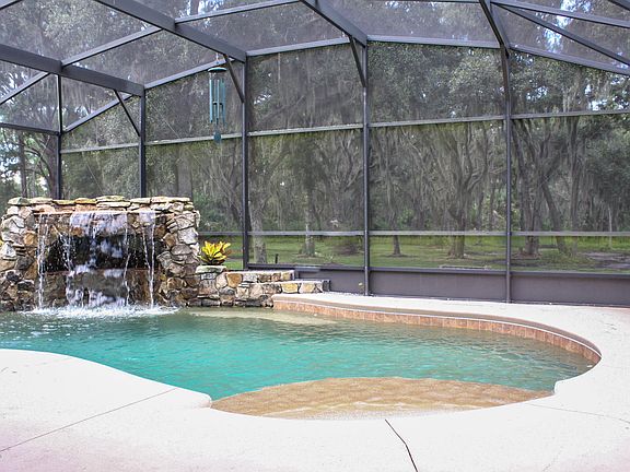 Rare Listing on North Merritt Island. Executive, Custom home with Country charm on 2.5 Acres Zoned for horses. 2 Master Suites, 1 Upstairs and 1 On the Ground Floor. Bright with 9' Ceilings Up and Downstairs. Large Island Kitchen is open to the Family Room with Surround Sound and both view the freeform screened Pool with a Grand Waterfall and ''Swimout'' in the Shallow end. Concrete Block with Hardyboard Siding for extra Low maintenance. From the Screened Front Porch you enter through the Leaded Glass front Door and you're greeted with the Oak Staircase to go Up to 3 Bedrooms and the Game Room or Stay Down and enjoy the Living Room, Kitchen, Family Room and 1 of 2 Master Suites. The Home is on a Fenced 2.5 Wooded Acres that includes a 16' X 30' Stand Alone Shed. 2 Electric Panels and a Separate Generator Panel for an Emergency. Some of the Best Nature and Family Parks in this Historic section of Merritt Island. Fish, Boat & Lots of room to Grow. Easy Access to NASA and the Cape