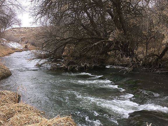 Own a piece of history when you build your new home on the Oregon Trail of Southern Idaho. Nearly 600 feet of frontage on your own trout stream, partially timbered, with abundant wildlife, located on the prestigious Kanaka Rapids Ranches gated community. A GEOTHERMAL hot water source will heat your new home and provide other energy needs, as well as quality drinking water when cooled. 6.36 acres of irrigated land will provide the resource you need to build a fruit orchard, garden, or pasture for up to 6 horses. A paved and publicly maintained county road will provide quick access to a nearby golf course as well as shopping and medical care. An hour's drive will find you in Sun Valley, Idaho, home of the best downhill skiing and shopping that rivals Rodeo Drive. You will have private access to over a mile of the beautiful Snake River, a community owned boat ramp, and the famous Kanaka Rapids. For gold enthusiasts, panning for gold in your spring fed creek will likely produce "color" in your pan. Finally, two fishing ponds you will own as a member of the Kanaka Rapids Homeowners Association, along with hiking trails and tennis courts, are all within walking distance.