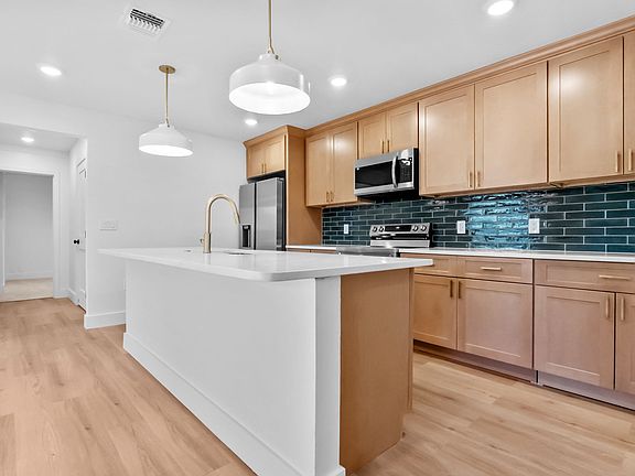 Large lotStainless steel samsung appliancesFull kitchenCustom light oak cabinetryCarpeted bedroomsVinyl flooringWhite quartz countertops