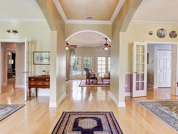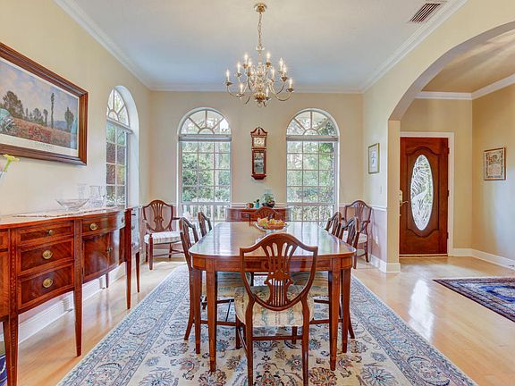 This charming custom built home is nestled on 1+ acre in the private gatedcommunity of The Links in Jupiter's Ranch Colony. Beautiful treed views from every room, light and bright, high volume ceilings, French doors, spacious kitchen with breakfast area & cook island, fireplace, office and 1st floor bonus room can easily be a guest bedroom. Gorgeous 2nd floor master suite and additional 4 bedrooms nearby is great for a growing family. The covered patio steps out to the expansive pavered patio with the heated pool & spa, fenced backyard, an oversized 2.5 car side load garage with a secondary driveway from the circular entry affords plenty of parking.