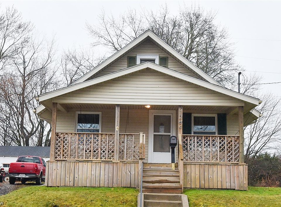 Cheaper than rent! Cute updated ranch/bungalow. Newer roof, windows, siding, furnace, hotwater tank. Newer flooring throughout. Freshly painted. Completely remodeled bathroom with new vanity, flooring and tub/shower. 100 amp wiring. Glass block windows. Detached one car garage with electric. Nice enclosed porch not included in square footage above. Covered front deck with swing. Fully applianced including dishwasher. Shower in unfinished basement which is also freshly painted. Second parcel behind home is irregular shape approximately 77x30 which includes the driveway and garage. Taxes above include both parcels but do not reflect owner occupancy discount. Home also qualifies for Community Difference mortgage program with no money down and no private mortage insurance (PMI). FHA and VA financing welcome. Buy now or forever hold your lease!