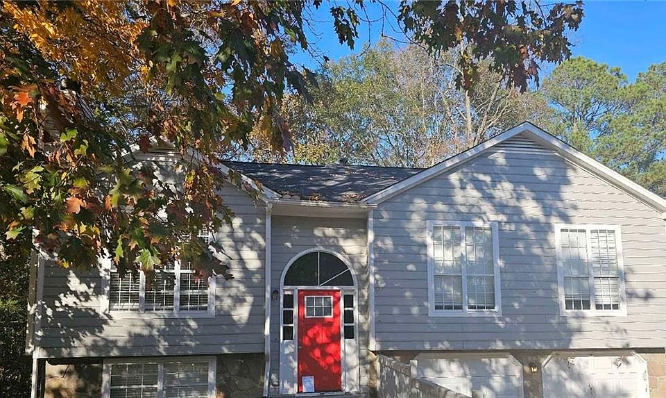 Split level 4 bedroom 2 and a half bath home with a bold RED front door just waiting for you to call home. Quaint kitchen with granite countertops looks out to the living room with fireplace, perfect for entertaining and easy access to balcony off the back of house. Master bedroom is spacious with glass front closets and a great soaking tub. Two additional rooms upstairs and a full bath. Down the stairs you will find a great room, small bedroom and half bath that hosts the laundry facility, exiting into the garage.