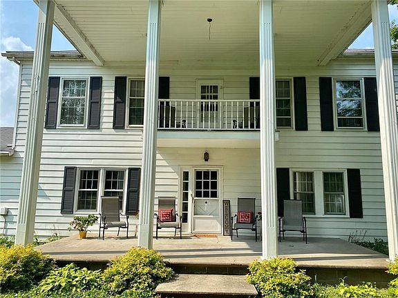 Living is easy in this spacious 4,000+ sq ft farm hse situated on 6.5 acres & is lovingly referred to as Pine Ridge Farm. Fall in love w/all this property has to offer. The perfect country setting down the long circle drive leading back to the big columns on the front porch & the rolling hills behind the home complete w/a covered bridge that crosses Lick Creek. Highlights incl 6 Bedrooms, 3 full baths, 2 sep living spaces, bonus large sunrm, 1 car gar, bsmt, big barn, heated/cooled workshop w/loft that could be used as an office, mini barn, back-up generator & much more. Bedrm on main could be used as in-law quarters. Updated mstr bedrm complete w/ensuite & wi closet. Spacious kitchen, wi pantry, dining rm, Lg living rm w/bi bookcase