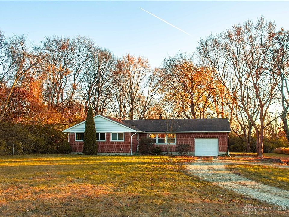 Freshly painted Ranch home on a 1-acre lot, backing onto 40-acres of woods. Original hardwood floors, remodeled bathroom, and a full basement. Step inside to a spacious 25 x 12 living room connected to the dining room, which looks out on the back yard. This flows into the kitchen with new countertops and appliances that stay with home. 16 x 11 master bedroom with built in closet, and a second 7 x 4 storage room that could be remodeled to an en-suite bathroom. 2 additional generous-sized bedrooms and remodeled bathroom complete the layout. The home is set back off Westbrook with an attached 1 1/2 car deep garage. The back yard is a serene retreat, with mature maple trees, a fire pit and picnic table. Feels rural, yet you are close to everything in Englewood, Clayton and Trotwood. Full basement is 43 x 35 waiting to be finished. A small bar and a freezer unit stay in basement. New electrical panel and meter 2025. Hot water heater 2024. Bathroom shower updated in 2023. Roof, gutters and storm doors 2019. Some gutters replaced 2024. Tree trimming 2024. Kitchen counters and appliances 2020. Heat Pump A/C 2020. Furnace 2014. Sump pump new 2025. Vinyl windows throughout.