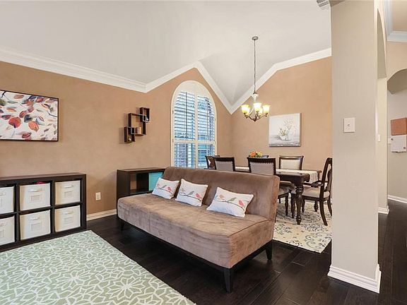 Immaculate one story home with great floor plan. Home boasts plantation shutters, archways, niches & wood floors. Stacked formals. Spacious island kitchen w breakfast bar, granite,skylight, Stainless appls, gas cooktop & walk in pantry. Breakfast nook with sliding doors. Large family rm with a corner tile surround fireplace with mantle. Large & pvt master with window seat & his & hers walk in closet. Master bath features jetted tub, & dual sink 4th bedroom with French Doors can be used as study. Spacious sec bdrms. Master planned community features 2 pools, walking trail,& lake. Great location close to FC Dallas Stadium, shopping, Frisco's $5 Billion Mile which includes the Dallas Cowboys The Star, & highway