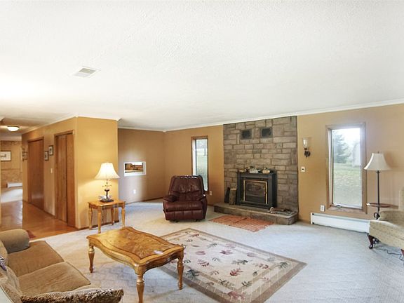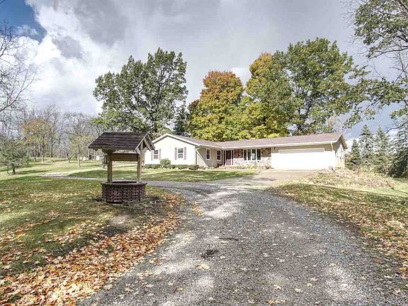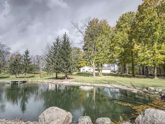 Welcome to your private country oasis! Picturesque view as you pull into your property with the well maintained lawn and stocked pond. Home has a spacious living room with natural gas fireplace and a 3 seasons room! Dining room is open to the kitchen to make entertaining so smooth! Stove in kitchen is only 2 years old and hardly used! Like new! Impressive views of the property from any bedroom. Comfortable master suite and first floor laundry. In addition, the pole barn is a whole other living space!! That structure has serious bragging rights- first floor 1/2 bath. 40x30 pole barn that can fit 8 cars easy or all your outdoor toys. Check out the finished 2nd story with custom made bar, office space, living room, and two nonconforming bedrooms. Ideal for long term guests, man cave or great additional hang out for friends and family. Second floor balcony to watch the deer. Great gardening space. Lovely views of surrounding country side! You will find yourself at home!