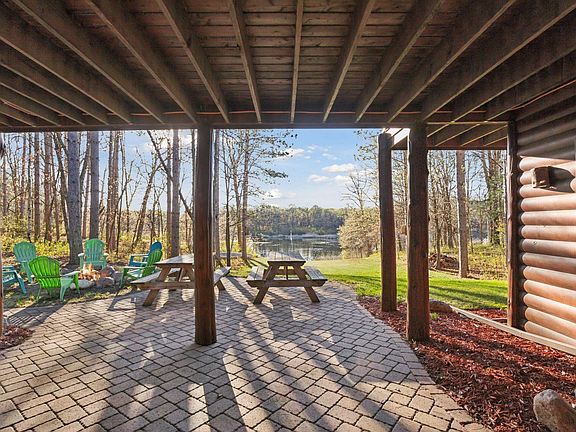 Set on 7.7 acres of tall pines, with sunset views over Fawn Lake, this one-level living, Nor-Son built log home (+ 48 x 40 pole barn built in 2020) is the total package of privacy, serenity, and lake life. The kitchen is the heart of the home with endless granite breakfast bar for gathering, gorgeous cabinetry, and pantry. Open and soaring vaults in the family room let in all the light and showcase the spectacular sunset view over Fawn Lake. Main level primary feels like a resort suite, featuring ensuite jetted tub and heated floors, gas fireplace, large walk-in closet, easy laundry access and separate deck entrance. The walk-out lower level offers additional entertainment space with open family room, wet bar, and game room. Guests can choose from three spacious bedrooms (two on lower-level and one upstairs), and the loft is an ideal home office, exercise, or creative space. Outdoors you can gather on the sprawling lakeside deck or paver patio with fire pit. The yard will accommodate lakeside lawn games and is just a few feet from water's edge and your private boat dock. No steep elevation or stairs to the shore! The oversized attached garage is heated with floor drain, storage closets and optional kennel set-up. A 48x40 pole building built in 2020 offers plenty of room for all your toys, plus RV hookup for visiting guests. While private and off the beaten path, this home is in just minutes from the resort hot-spots in Pequot, Cuyuna and Crosslake/Whitefish. New roof in 2023. Scheduled deck and siding sealing will be done prior to closing. Incredible price for an incredible property, PLUS Seller will include all lake toys, furniture, linens and furnishings - $40,000 value! For your own crew, or as an investment (vacation rental or potential to divide land?), this is an incredible value!