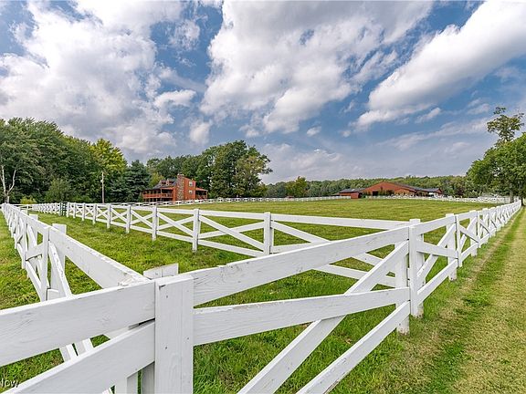Welcome to JSR Equine Center, a premier 58-acre equestrian estate in Chardon, Ohio, reimagined with over $1M in recent upgrades. Enter through a new $36,000 industrial gate and freshly paved drive to discover 10 fenced paddocks (eight with automatic water), five ponds, and world-class facilities including two indoor round pens, an outdoor round pen, a full outdoor racetrack, a six-horse round pen, a four-horse jogging machine, and multiple run-in sheds with automatic water. The main barn has been extensively updated with new roofing, commercial-grade garage doors, a gas heating system, new plumbing and electrical, new feed and storage rooms, a cedar-lined façade with covered porch, and a rebuilt office with cedar siding, stone wall, new roof, windows, and HVAC. Additional equestrian features include a $50,000 wash rack with cement floor, rubber mats, and industrial washer/dryer, upgraded footing in arenas, new water systems, and a surveillance and monitoring system covering barns, stalls, pastures, and residences. Infrastructure improvements include two new natural gas generators, three independent gas lines for the house, barn, and apartments, and fully addressed drainage across farm and pastures. The residences include a fully rebuilt 3-bedroom, 2-bathroom main house with hardwood floors, cedar decks, two river-stone fireplaces, new appliances, and a finished basement, plus two completely renovated apartments ideal for staff housing or short-term rentals. Extensive landscaping includes $250,000 in fencing, removal of 80–100 trees with stump grinding, new trees, boulders, dog fencing, multiple garages and sheds. Every element has been refined, creating a turnkey destination for training, boarding, breeding, or private equestrian enjoyment.