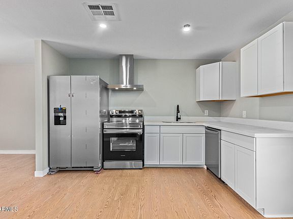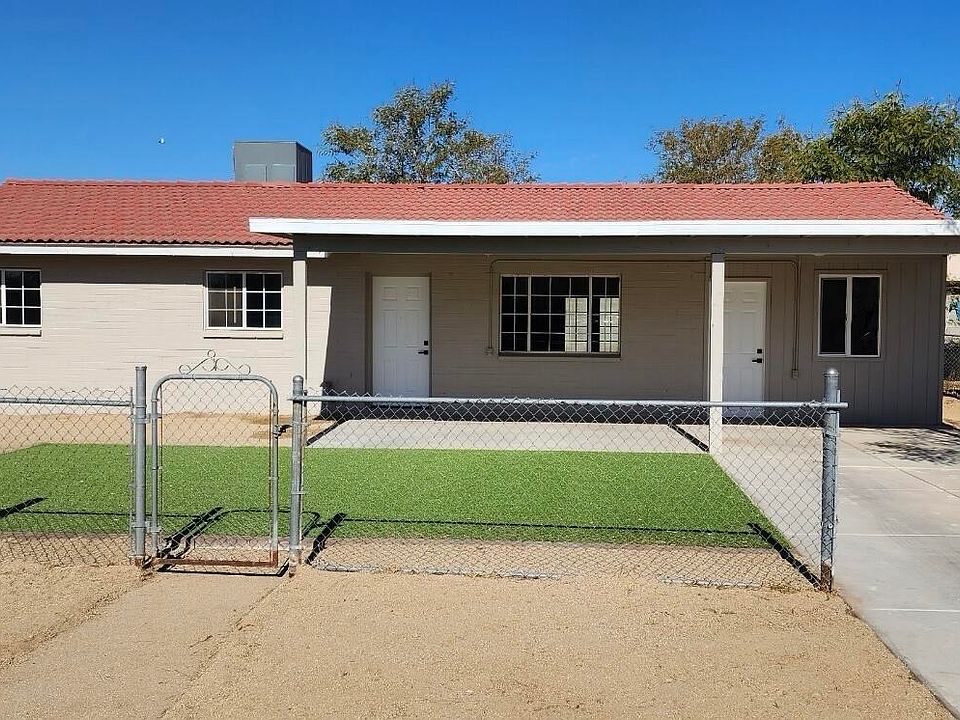 Move-in ready! This tastefully updated 4-bedroom property is now available! No HOA. It features a parking space, a cozy front porch, and a large front yard with artificial turf. Be welcomed by the delightful interior, boasting an inviting living room paired with tall ceilings, a trending palette, and lovely wood-style flooring. The eat-in kitchen is a homemaker's dream, showcasing recessed lighting, sparkling stainless steel appliances, granite counters, and white cabinetry. Continue onto the primary retreat, highlighting plush carpeting, a walk-in closet, and a pristine bathroom with a step-in shower. You'll love hosting fun gatherings in the spacious backyard with pavers, synthetic grass, and lots of space for memorable gatherings. Take advantage of this incredible opportunity!
