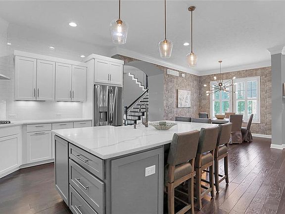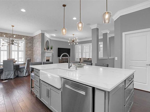 Gorgeous all brick, better than new custom built home. Open floor plan perfect for entertaining. Hardwood floors on main & upper level and plantation shutters throughout. Office w/ beautiful built-ins. Gourmet updated Kitchen featuring island that seats 5 & farmhouse sink, SS appliances & subway tile open to Dining area & Great Room w/ fireplace. Main Floor Master Suite, great bathroom w/ spacious shower & walk in closet w/ custom built-in/shelving. Upper Level w/ expansive loft, 2 bedrooms & full bathroom. Lower Level w/ wet bar, exercise room, bedroom & full bathroom. Covered patio & fireplace.