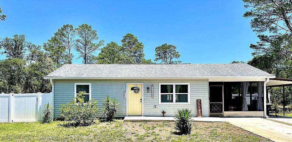 Recently updated 2 bedroom, 1 bath home with screened porch, carport, large back yard. Within the last year, we remodeled kitchen with new cabinets, countertop, sink, lighting, new bathroom, guttering, new pergola in back, new storage building, new white vinyl fence, new windows & doors throughout, new water filtration system & water softener, new sidewalk in front & added to concrete patio in back. On well water. Energy efficient (Electric has been less than $100/mo). Not interested in owner finance, or having anyone help sell our house.