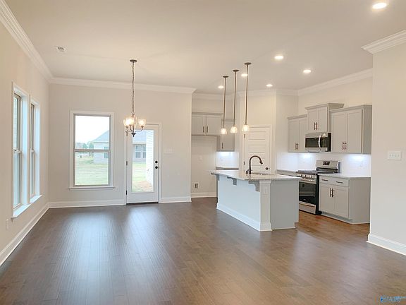 - Features: Crown Molding, Granite Counters, Kitchen Island, Pantry, Recessed Lighting, Smooth Ceiling, Wood Floor