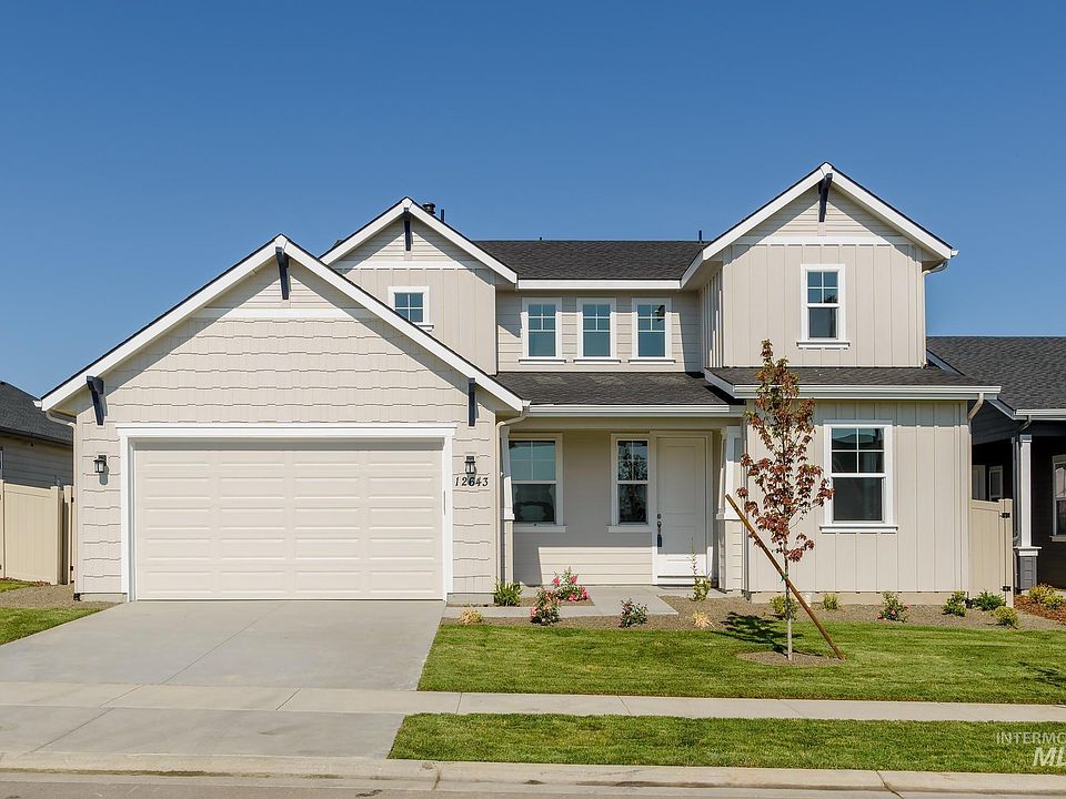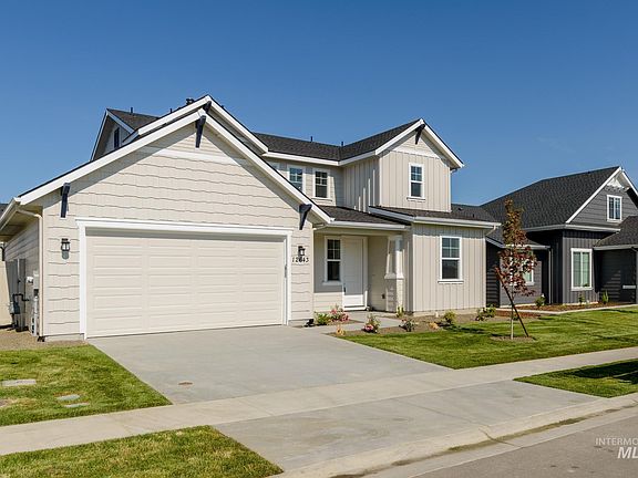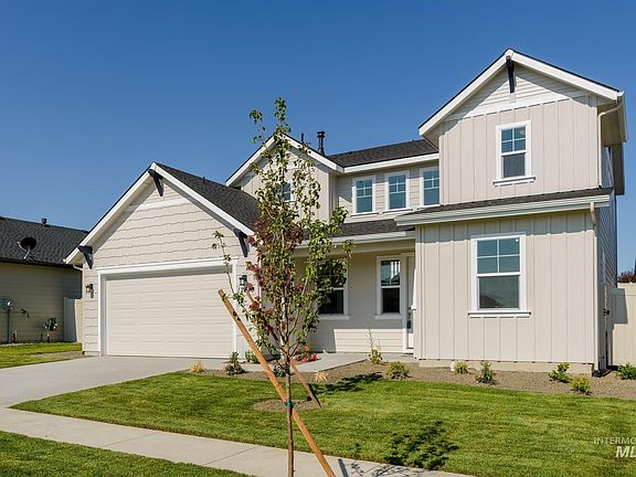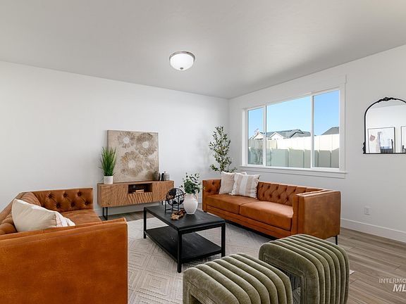 Featuring an idyllic blend of open-concept entertaining spaces and secluded retreats, the Olivia leaves a lasting impression. A charming foyer opens onto the alluring great room, overlooking a casual dining area and the spacious covered patio. Highlighted by a large center island with breakfast bar, the expertly designed kitchen offers ample counter and cabinet space as well as a walk-in pantry, gorgeous quartz countertops, wall oven and gas cooktop. Secluded on the second floor, the lovely primary suite features an ample walk-in closet and a beautiful primary bath with dual-sink vanity, a large soaking tub, and tile shower. Two secondary bedrooms share a hall bath and offer sizable closets as well as convenient second floor laundry. Private office downstairs. Carriage hill amenities include a swimming pool, pool house, and playground and is a short drive from Lake Lowell and Deer Flat National Wildlife Rescue. 3 car garage. Front and rear landscape included. BTVAI