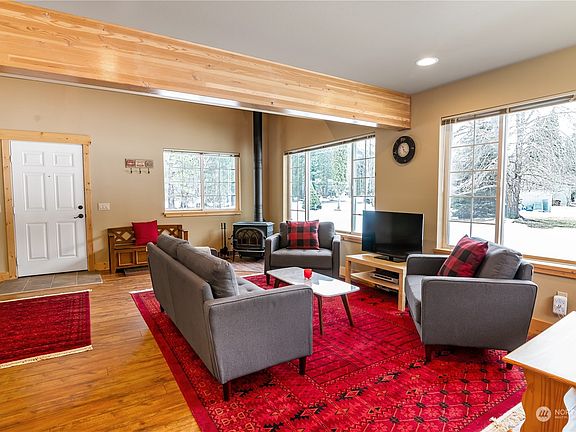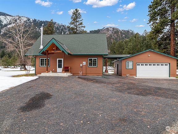 Discover this picture-perfect log-sided cabin set on entirely level acreage in the beautiful Icicle Valley. This like-new, two-bedroom, two-bath getaway offers a warm, open floor plan with vaulted ceilings, easy-care laminate flooring, a cozy wood stove, and a generous open loft space. Discover lush irrigated grounds, beautiful mountain and territorial views, and a handy detached garage with a covered breezeway. Enjoy terrific proximity to every imaginable recreational pursuit: Hiking and biking trails, Leavenworth Golf Course, Sleeping Lady Mountain Resort, Wenatchee Riverfront access is just down the street, plus this property is less than 2 miles from our Bavarian village. Make this your idyllic Icicle retreat!