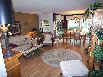 2 bedroom, 2 bath, neat and clean ground floor, end-unit with attached garage. No carpet - all tile and upgraded laminate. Private front entry courtyard. One smaller screened patio from the dining area, another larger screened patio from the dining area, breakfast nook and master bedroom. Very light and bright.HOA fees: $951/Qtr.